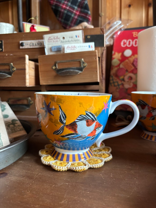 ユニークなキャラクターと 豊かな色彩のマグカップ 元気が出そうな食器です。 サイズ 12×8 H7 容量 300ml
