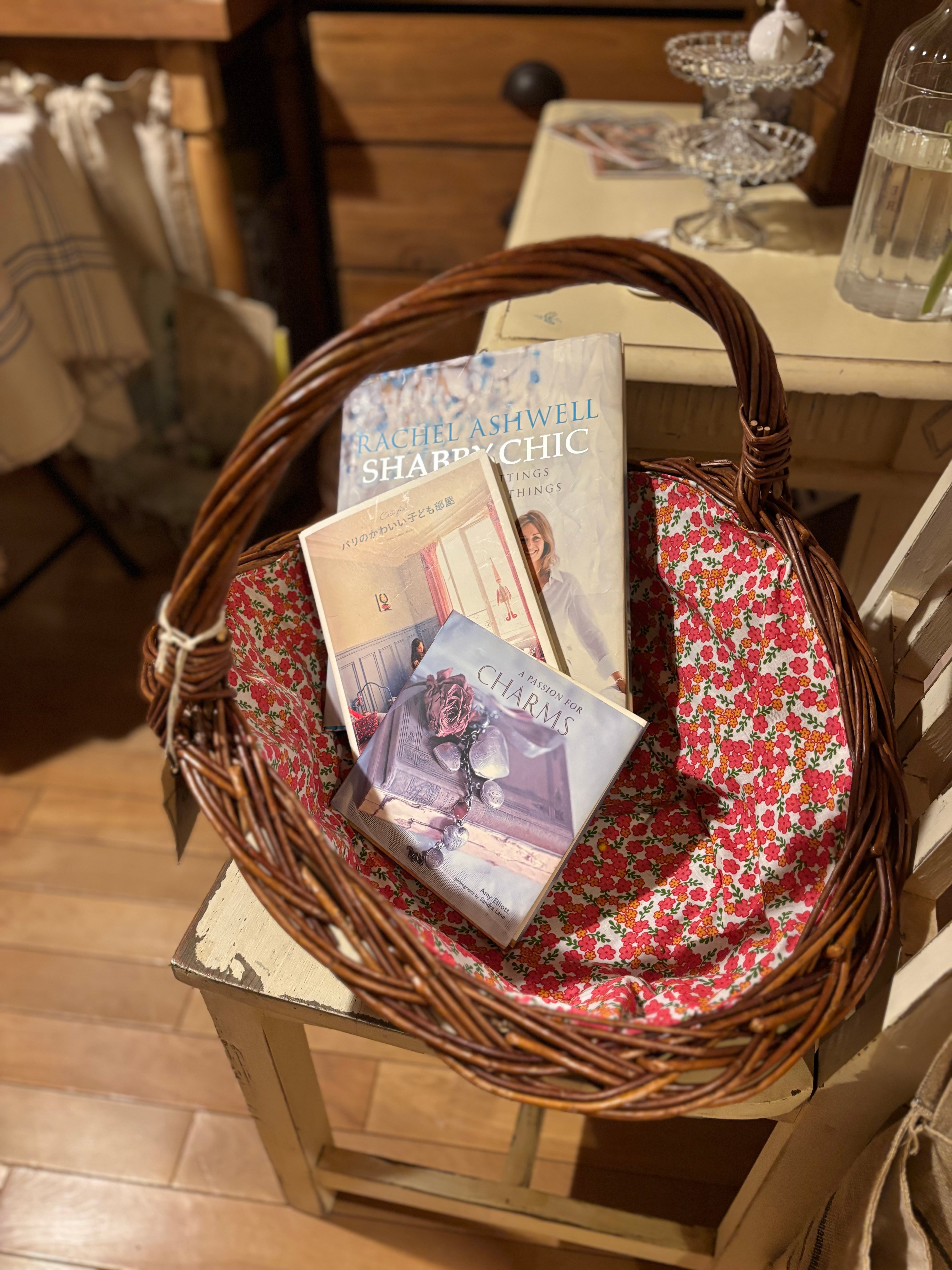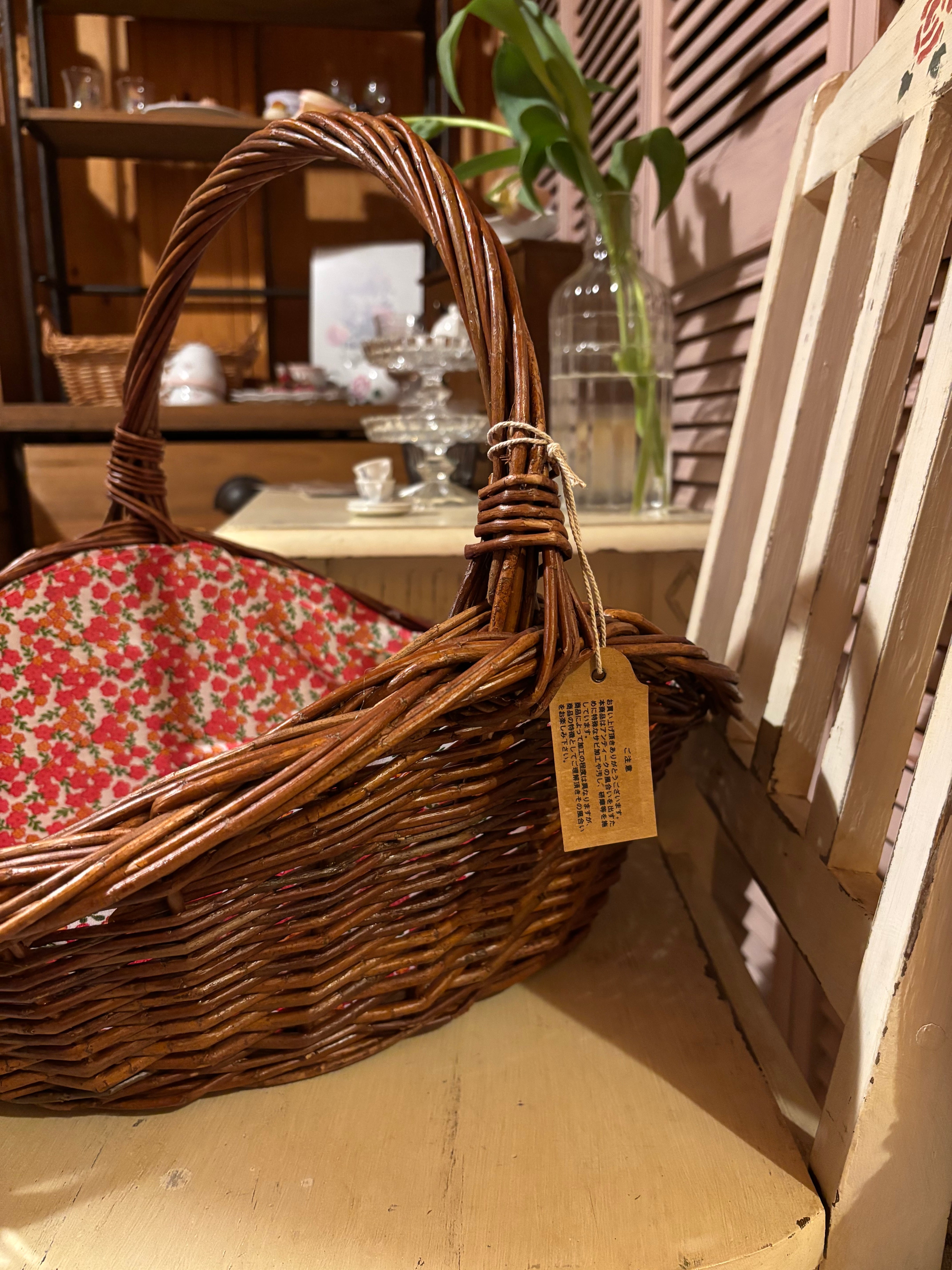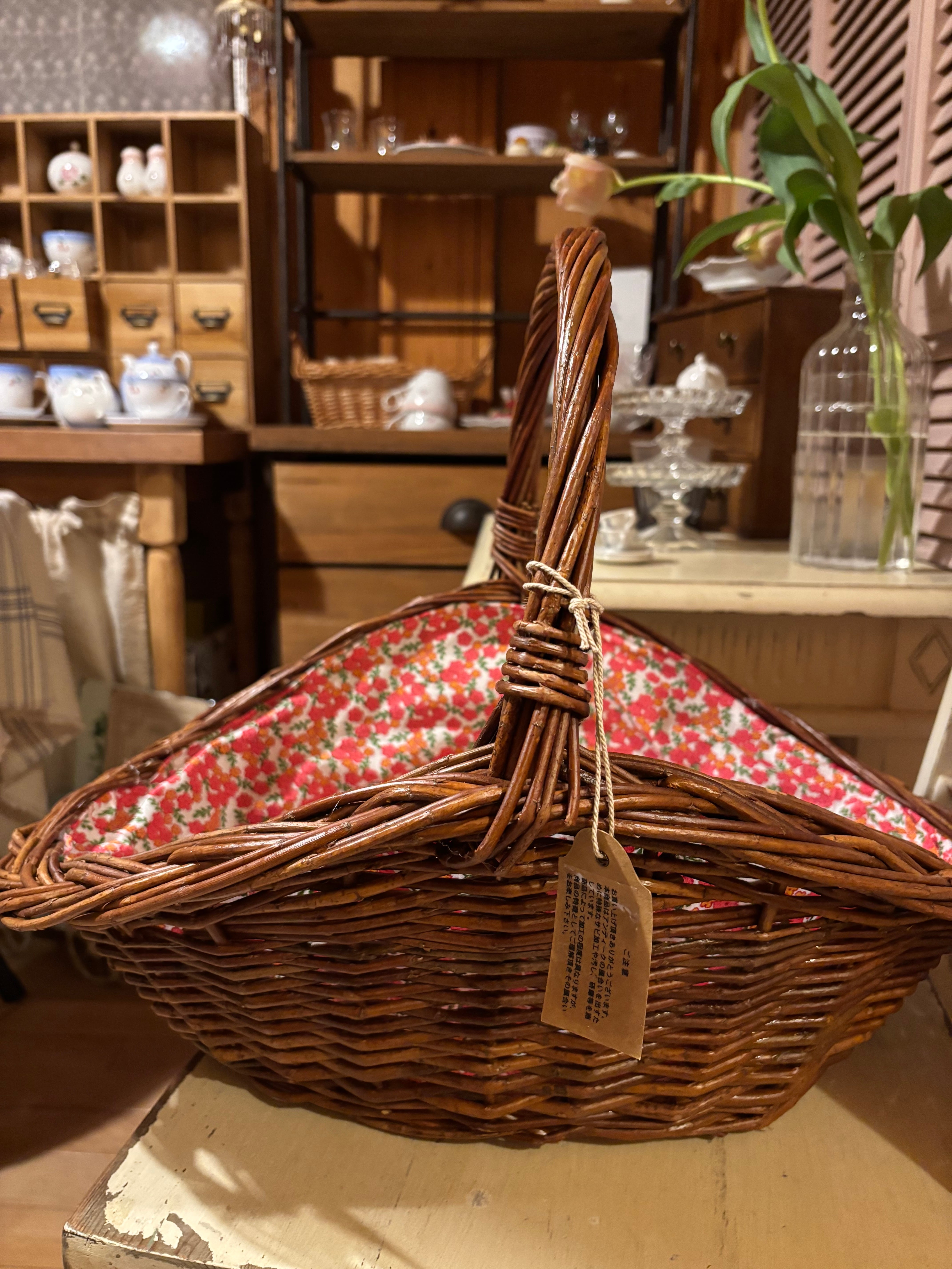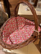 可愛い小花柄の布が付いたバスケット