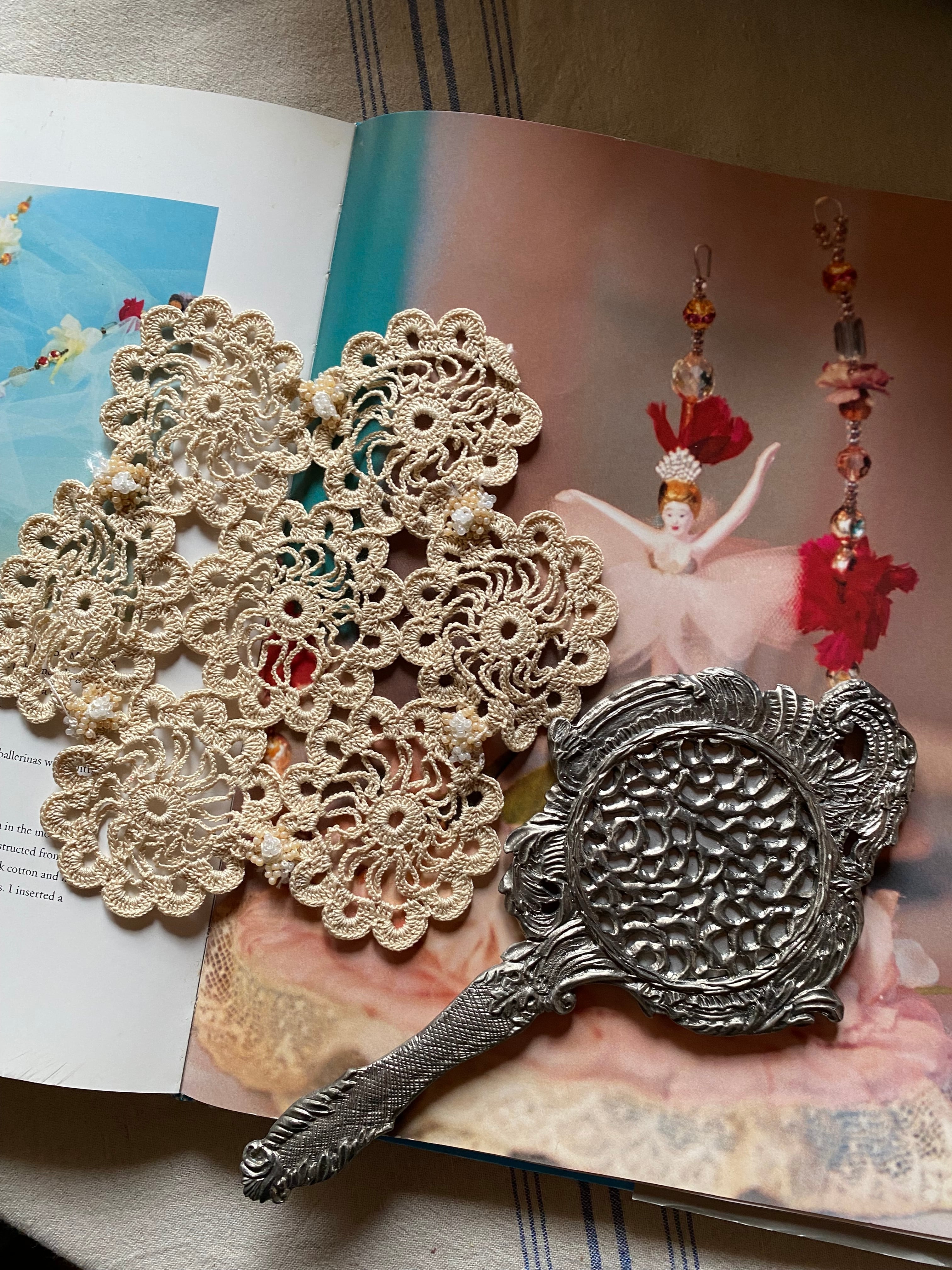 ドイリーと手鏡のセットベージュ