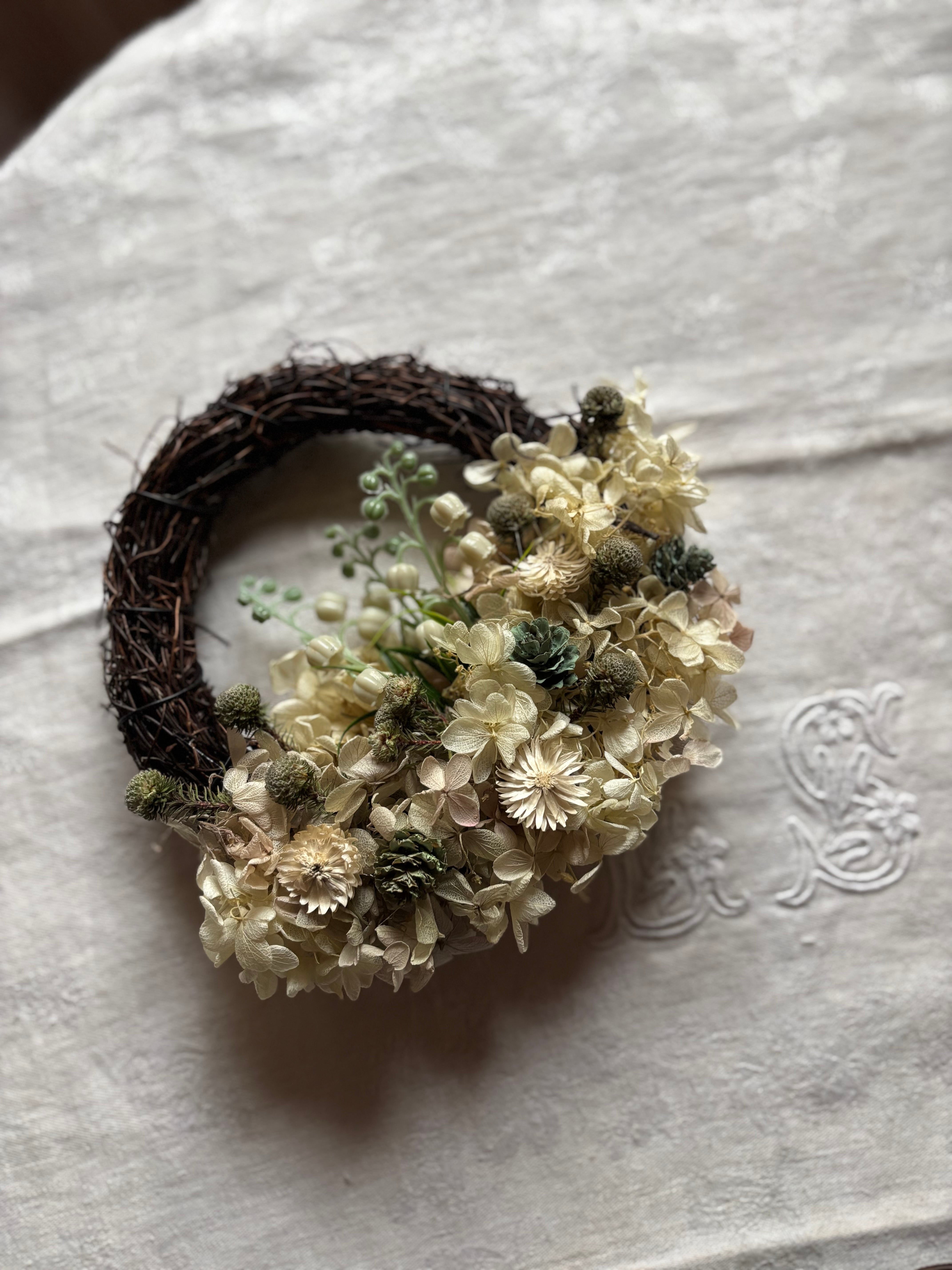 ハンドメイドのスズランリースです。