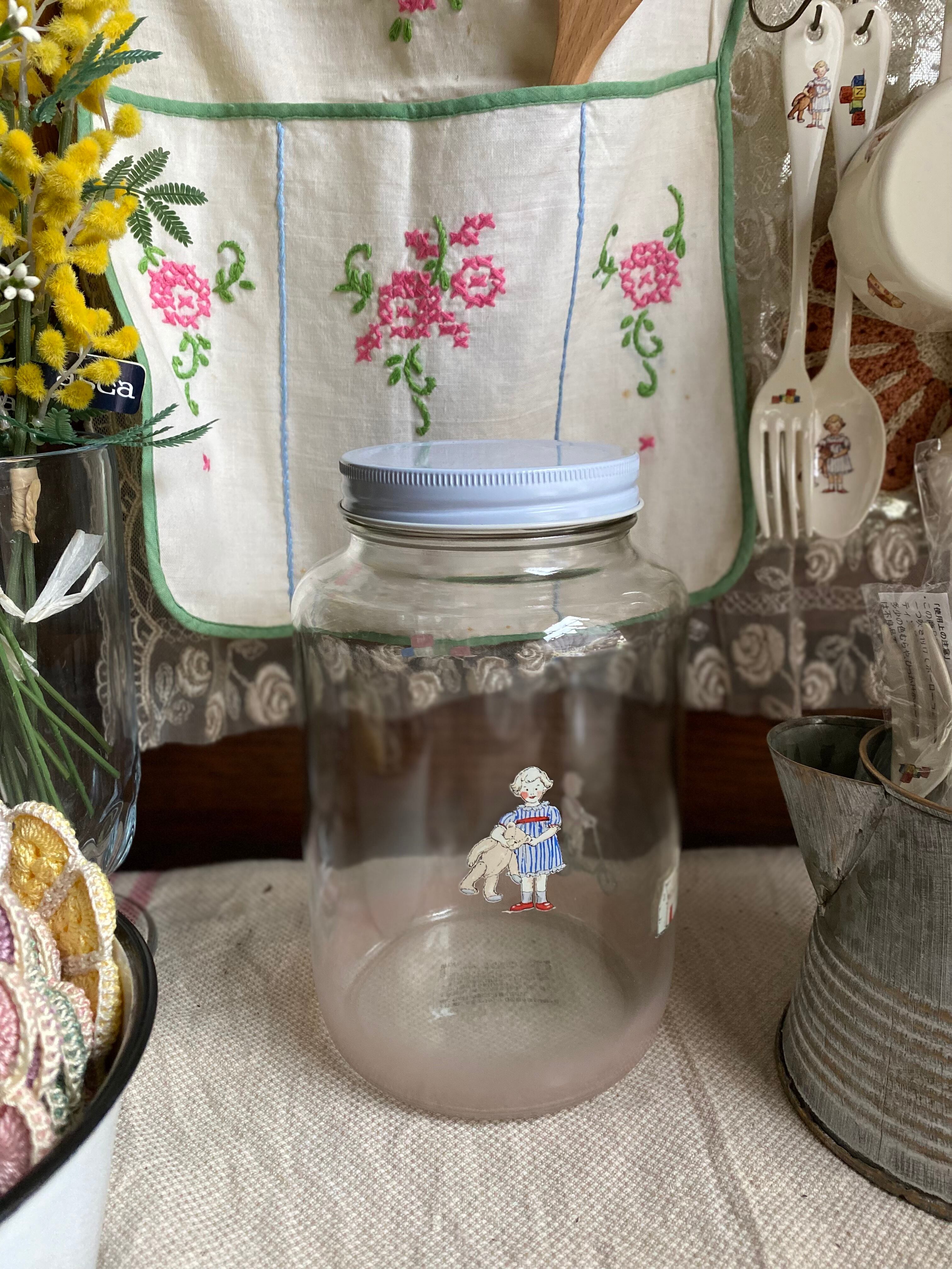 大きなガラスの瓶に可愛いプチメゾンの絵柄が