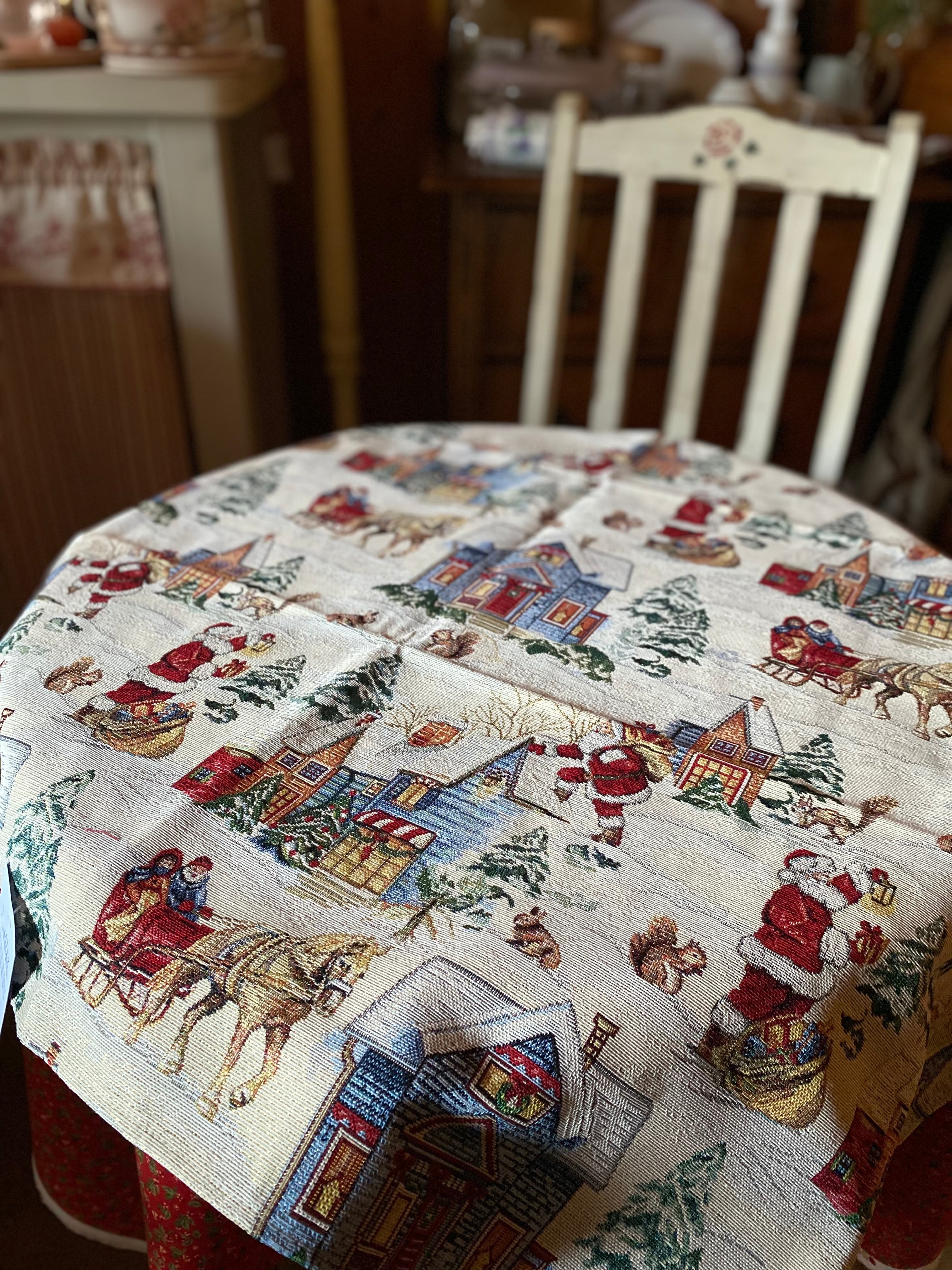 描かれた可愛らしく温かみのあるテーブルクロスです。